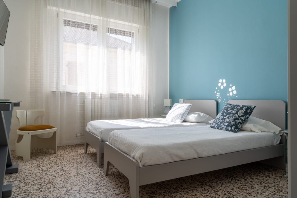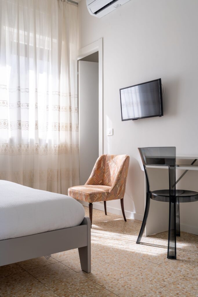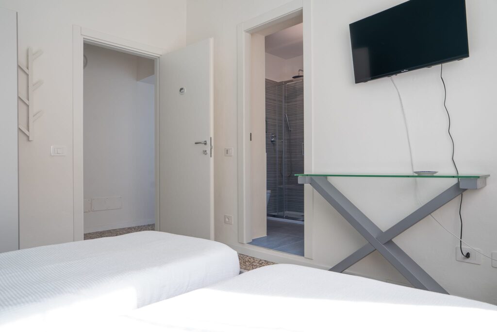 Ogni camera possiede bagno privato, condizionatore con pompa di calore, televisione, lenzuola, biancheria da bagno e kit di cortesia.
